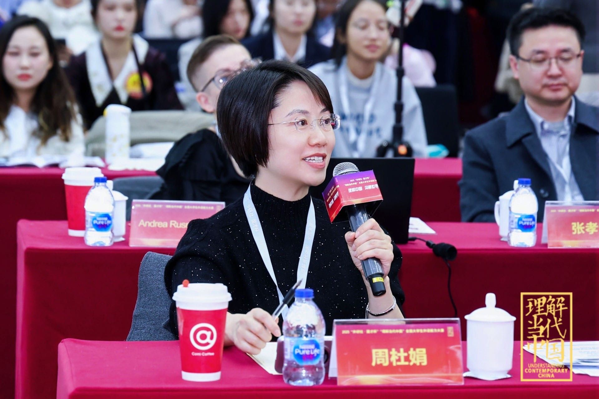 周杜娟老师在指导所有选手的同时,也为第三阶段比赛担任分赛场提问评委。