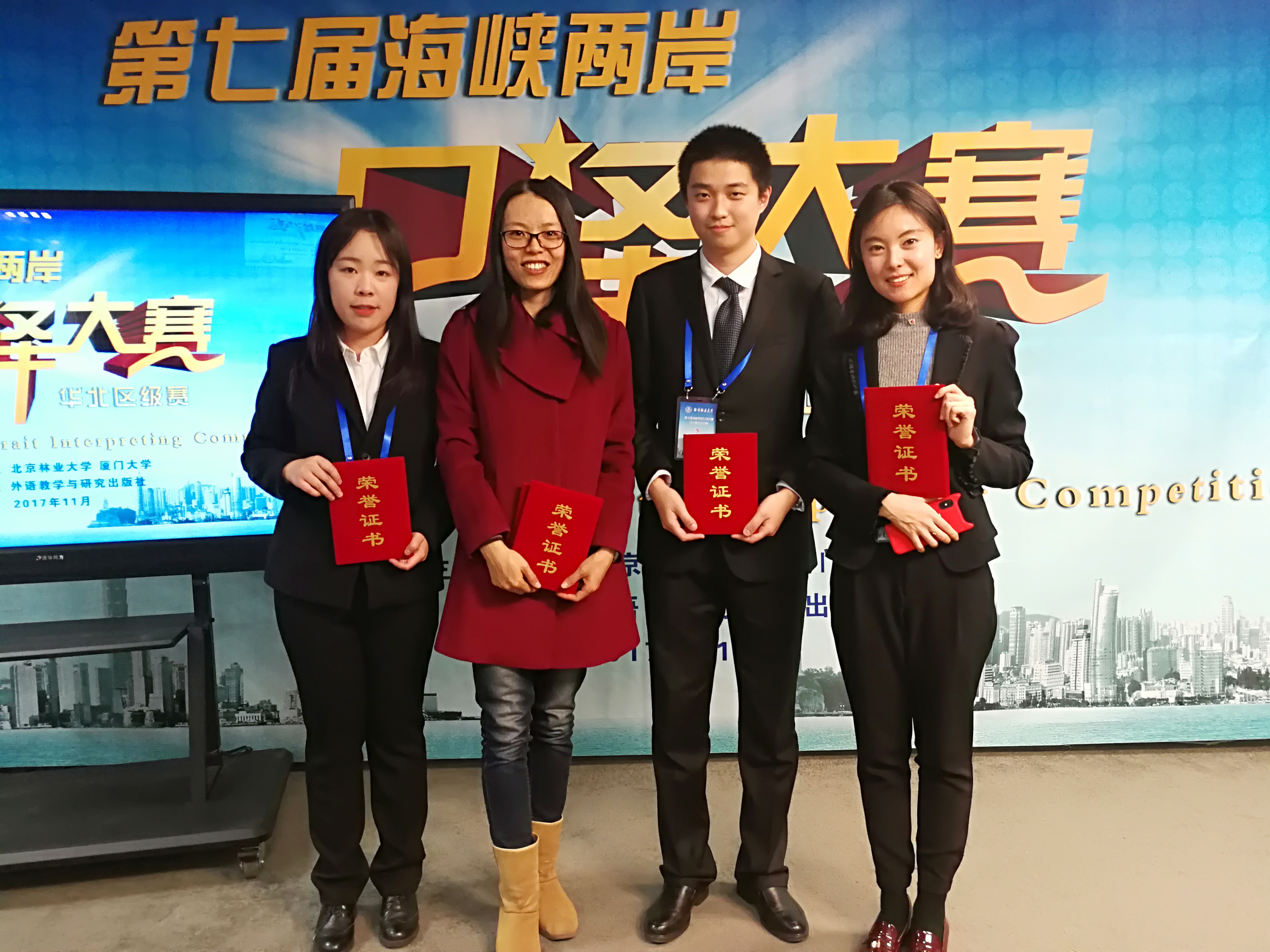 ——2017年11月11日,第七届海峡两岸口译大赛华北赛区区级赛在北京林业大学圆满落幕。来自北京、天津、河北、山西、内蒙古,五地数十所高校选手同台竞技,经过一天的精彩角逐,kaiyun登录中国入口登录MTI口译专业研二学生侯博雅获得华北赛区特等奖,翻译系大三学生谢怡凡获得华北赛区一等奖。侯博雅成功晋级,将代表华北赛区参加12月在对外经济贸易大学举行的大陆地区决赛。指导教师王颖冲老师获得优秀指导教师奖。