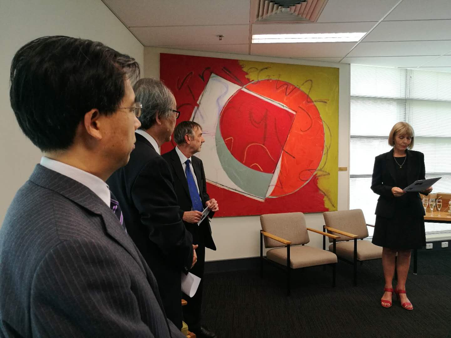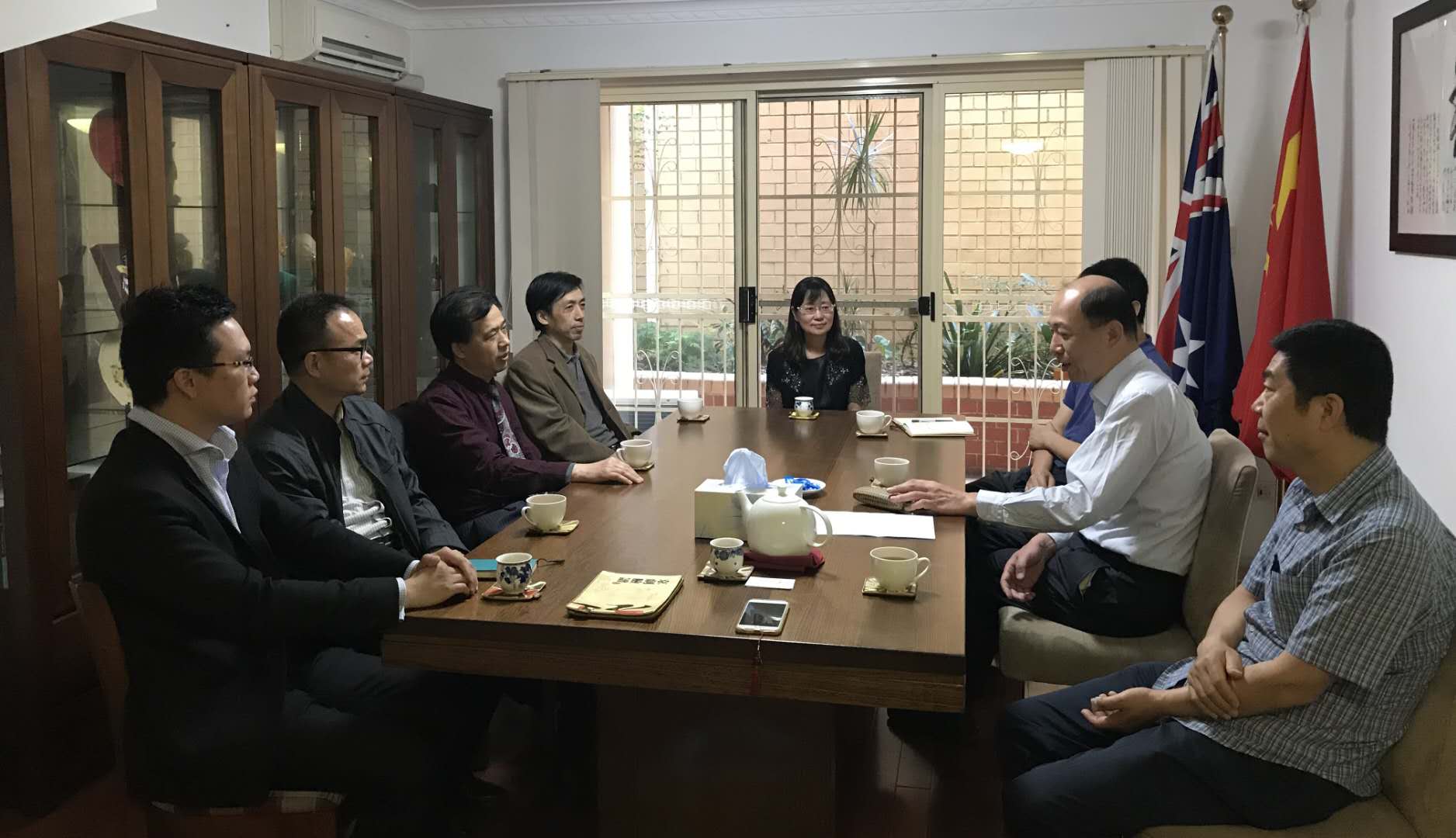 ——发布会后,孙有中一行与人文与社科学院院长雷•弗朗西丝(Rae Frances)教授和澳大利亚研究院院长保罗•比柯灵(Paul Pickering)教授等就两校学术合作与研究生交流进行会谈,确定了双方联合轮流举办面向全球高校青年学者的“文化走廊”(Cultural Corridor)高级学术研修班。