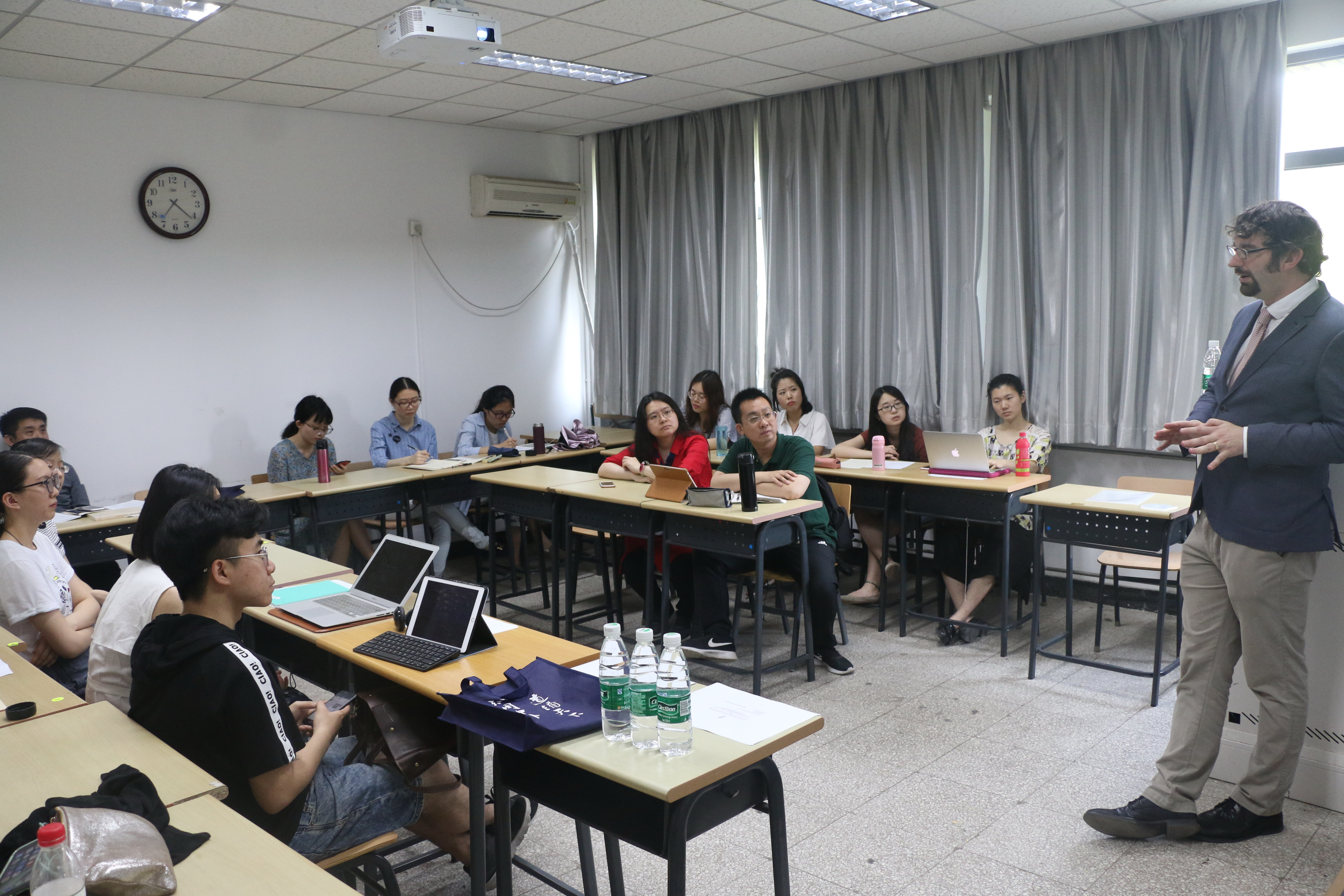 ——为纪念《复活节协议》签署20周年,5月25日下午爱尔兰研究中心特邀爱尔兰导演Maurice Fitzpatrick携其新作《以和平之名:约翰•休谟在美国》在英院309教室进行学术讲座,活动由英国研究中心、爱尔兰研究中心主任王展鹏主持,英研及爱研学生参加。