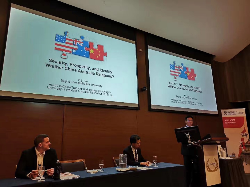 11月28-29日,第六届中澳关系暨跨文化研究论坛在西澳大学成功举行。中国澳大利亚研究会会长、我校副校长孙有中教授、kaiyun登录中国入口登录副院长谢韬教授、澳研中心主任李建军和kaiyun登录中国入口登录刘杨博士参加本次会议。本次论坛的主题是“中国的崛起与澳大利亚”,数十名来自中澳两国的顶尖专家和学者围绕中澳关系、经贸往来、跨文化交流等分议题进行了坦诚的交流。