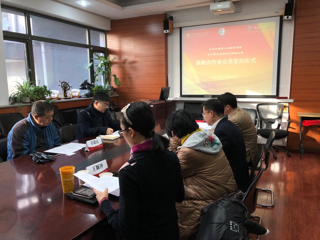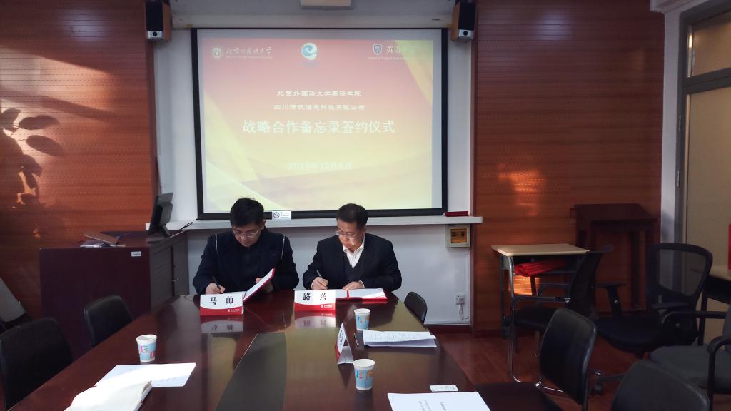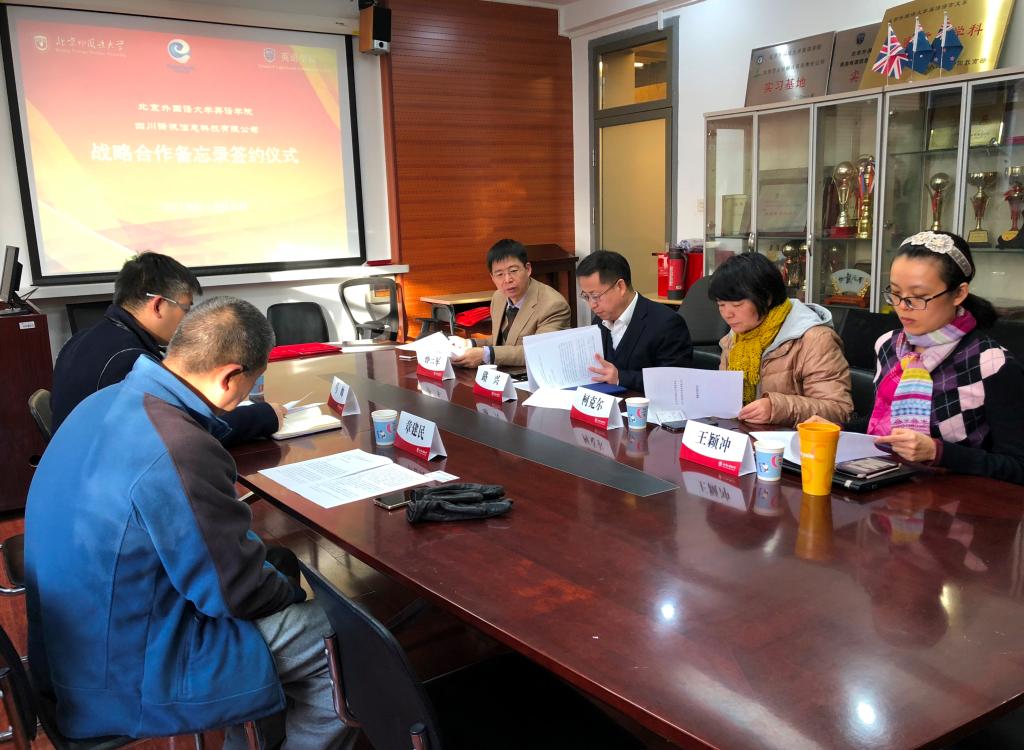 2018年12月6日,kaiyun登录中国入口登录与四川译讯信息科技有限公司校企战略合作备忘录签约仪式在kaiyun登录中国入口登录会议室举行。党总支书记路兴、MTI翻译中心主任孙三军、翻译系教师柯克尔、王颖冲,译讯科技CEO马帅、副总经理章建民参加。仪式由孙三军主持。