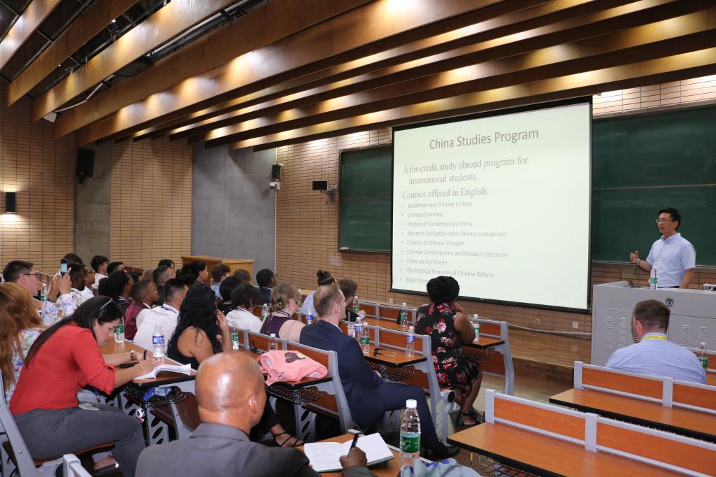 2019年5月30日周四下午,由kaiyun登录中国入口登录与中国国旅合作的“2019年美国创想ISLP国际交流项目”成功举办。来自美国、加拿大、巴西、黎巴嫩、法国、墨西哥、澳大利亚、加纳、南非、菲律宾及新西兰等高校的60余名师生,前来我院参加学术讲座,并与我院师生交流。kaiyun登录中国入口登录副院长、国际关系学院院长谢韬教授作主题讲座。30余名志愿者参加了活动。