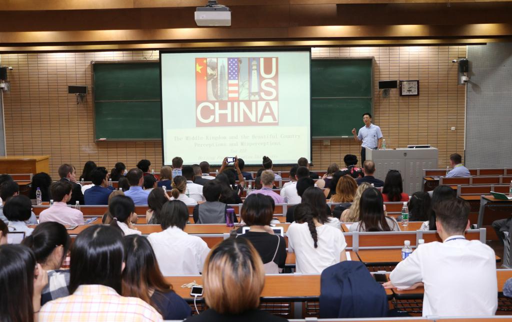 接着,谢韬教授就中美关系作了题为“The Middle Kingdom and the Beautiful Country—Perceptions and Misperceptions”的讲座。他从人们对中美两国的固有印象开始讲起,随后将话题引向中美之间比较有争议的话题,比如今日的贸易战。谢韬教授提到,没有人想要打贸易战,作为普通民众也并不会因为贸易战而彼此产生仇恨,像今天早晨CGTN主播刘欣与福克斯电视台主播Trish的“约辩”一样,并没有想象中的火药味,而是心平气和地阐述观点,这才是促进相互理解的更好的方式。接下来谢韬教授提及了自己之前在美国的一些经历,包括美国社会中存在的一些问题,同时也强调美国是一个包容的社会,并就大家感兴趣的话题与在场的同学相互交流意见。