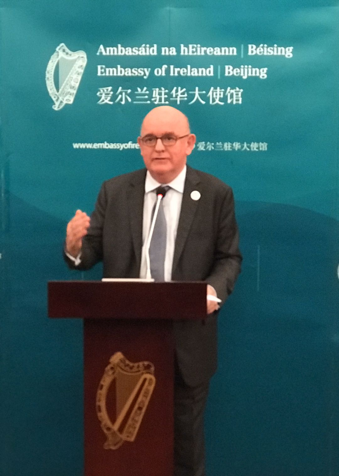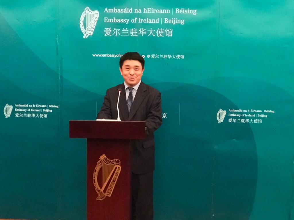 刘碧伟回顾了中爱关系发展40年的历史成就, 展望了发展前景。