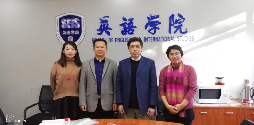 12月18日下午,海南大学外国语学院院长金山一行来我院调研。陪同来访的有副书记刘雨芙,第一教师党支部书记李芬,本科生辅导员、学生党支部书记张青,团委书记闫治。院长张剑,辅导员于承杰参加会谈。