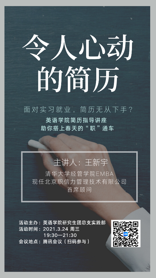 为提高学生简历撰写能力,提升毕业生就业竞争力,kaiyun登录中国入口登录于2021年3月24日晚举办“令人心动的简历”至简历撰写培训讲座。活动邀请到北京职信力管理技术有限公司首席顾问、人力资源领域著名培训师王新宇老师,王老师结合其丰富的面试及就业指导的经历,与同学们分享了简历撰写和面试求职过程中的经验与技巧。