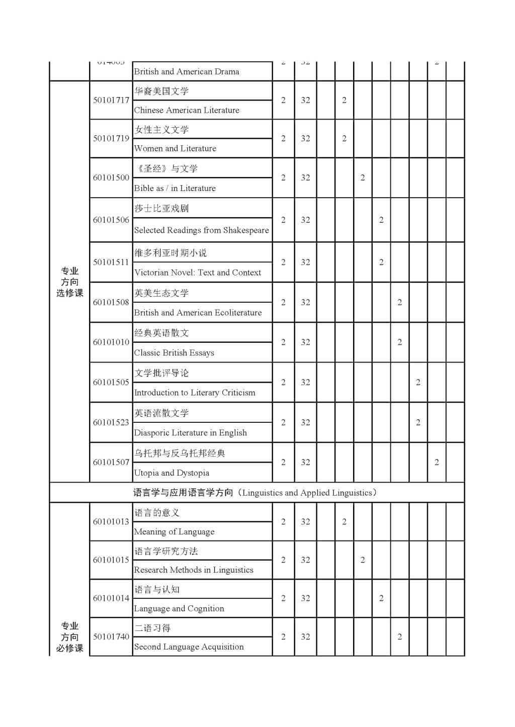 英语文学方向师资