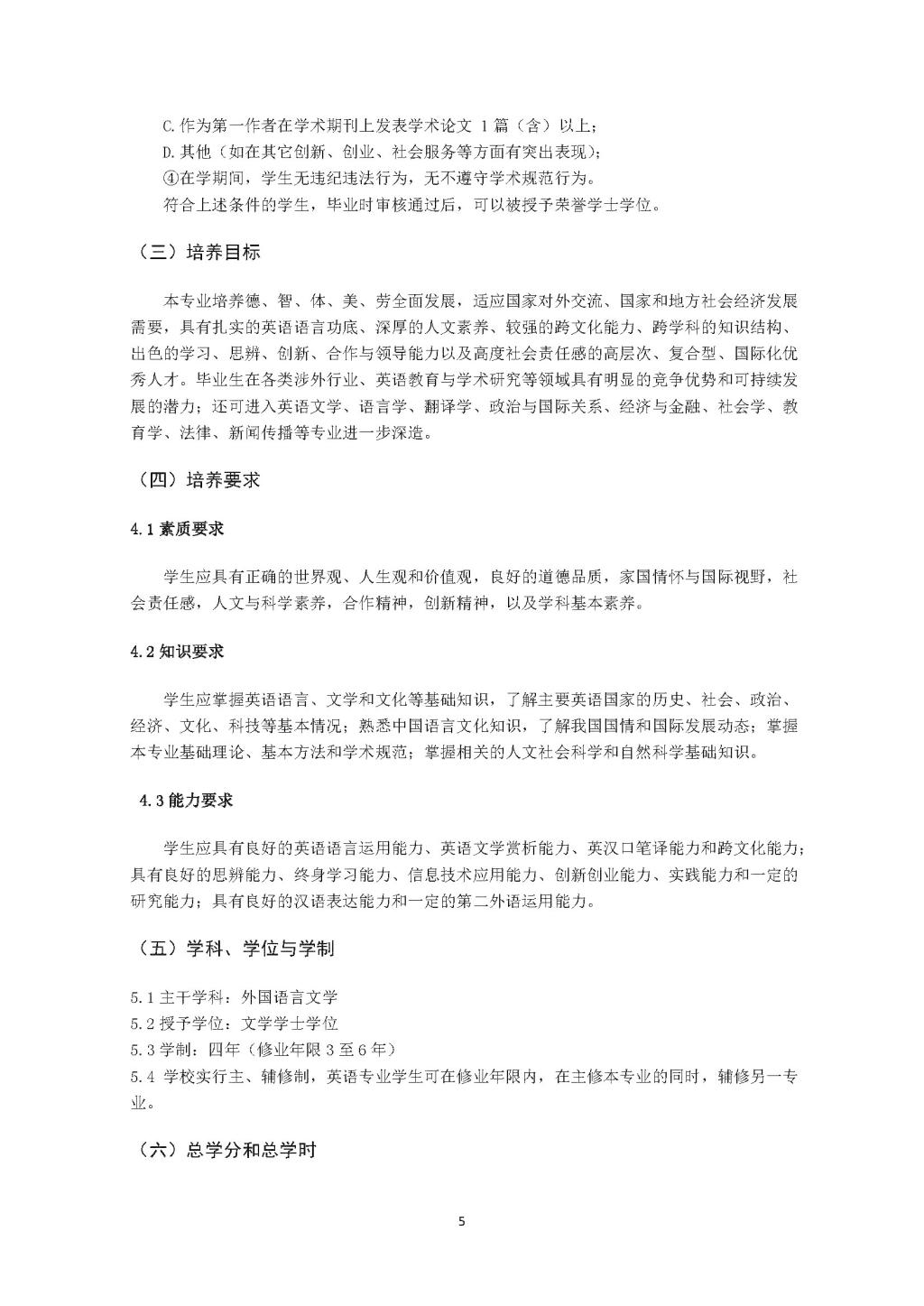 kaiyun登录中国入口登录英语专业本科培养方案(2020)