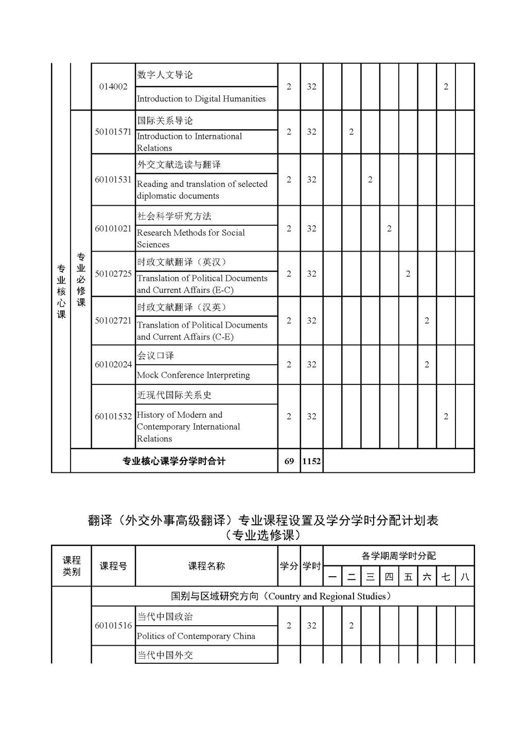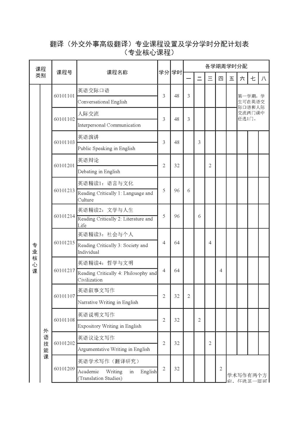 kaiyun登录中国入口登录翻译(外交外事高级翻译)专业本科培养方案(2021)