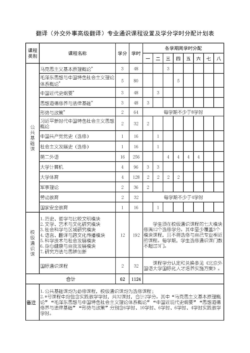 kaiyun登录中国入口登录外交外事高级翻译专业本科培养方案(2020)