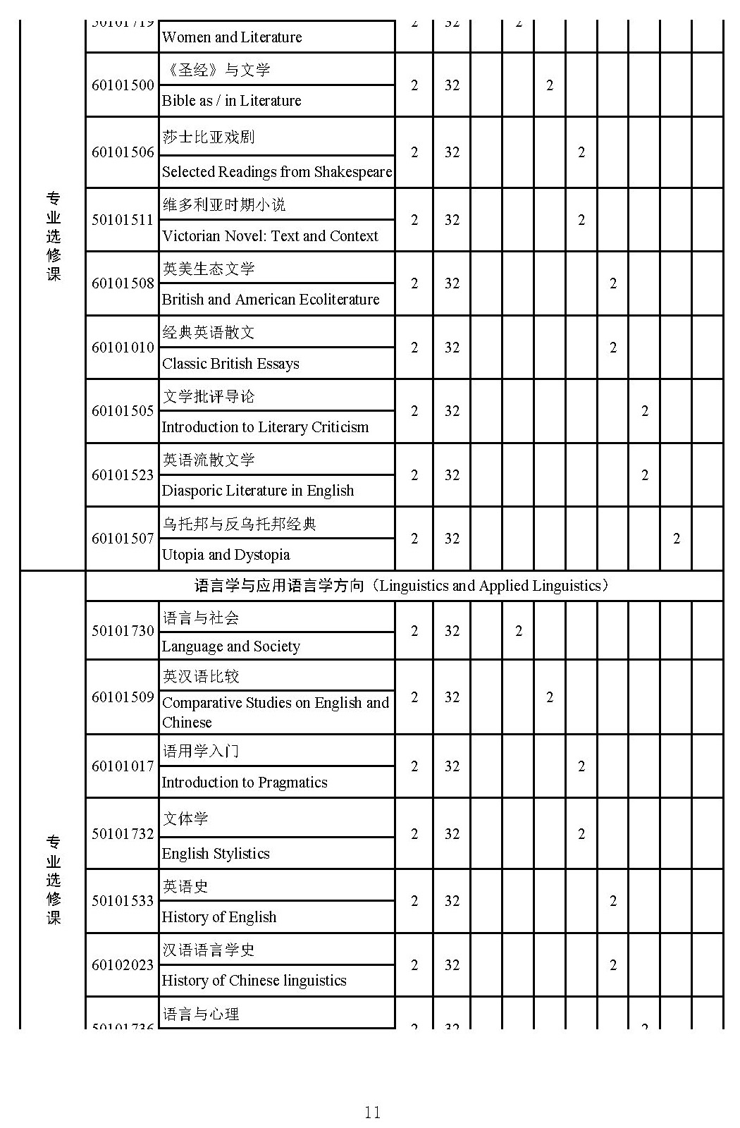 本科专业
