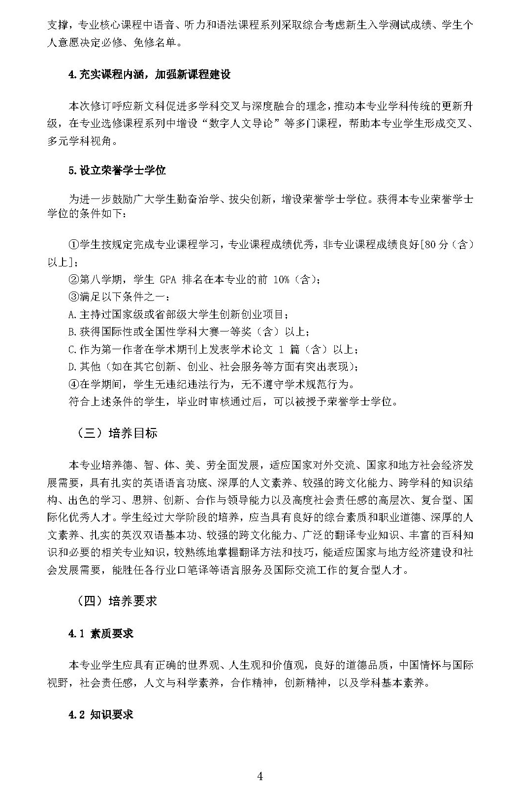 kaiyun登录中国入口登录翻译专业本科培养方案(2021)